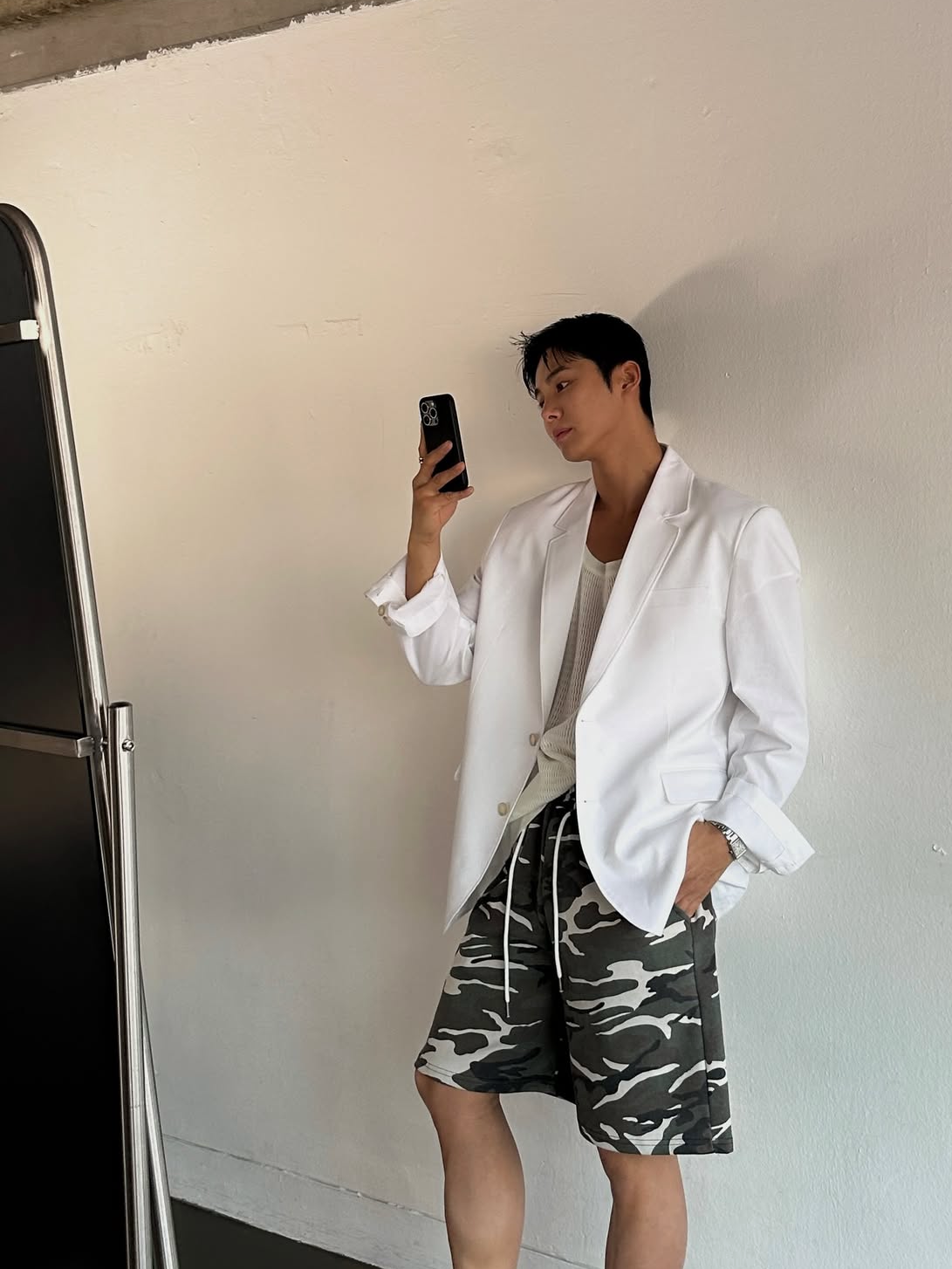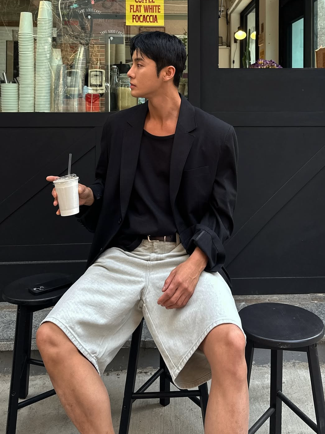 用輕薄挺身布料製作,保持版型同時唔會焗身。微寬鬆設計令內搭Tee、恤衫都得,袖口自然捲起更有隨性味道,襯牛仔褲或者西褲都好睇。