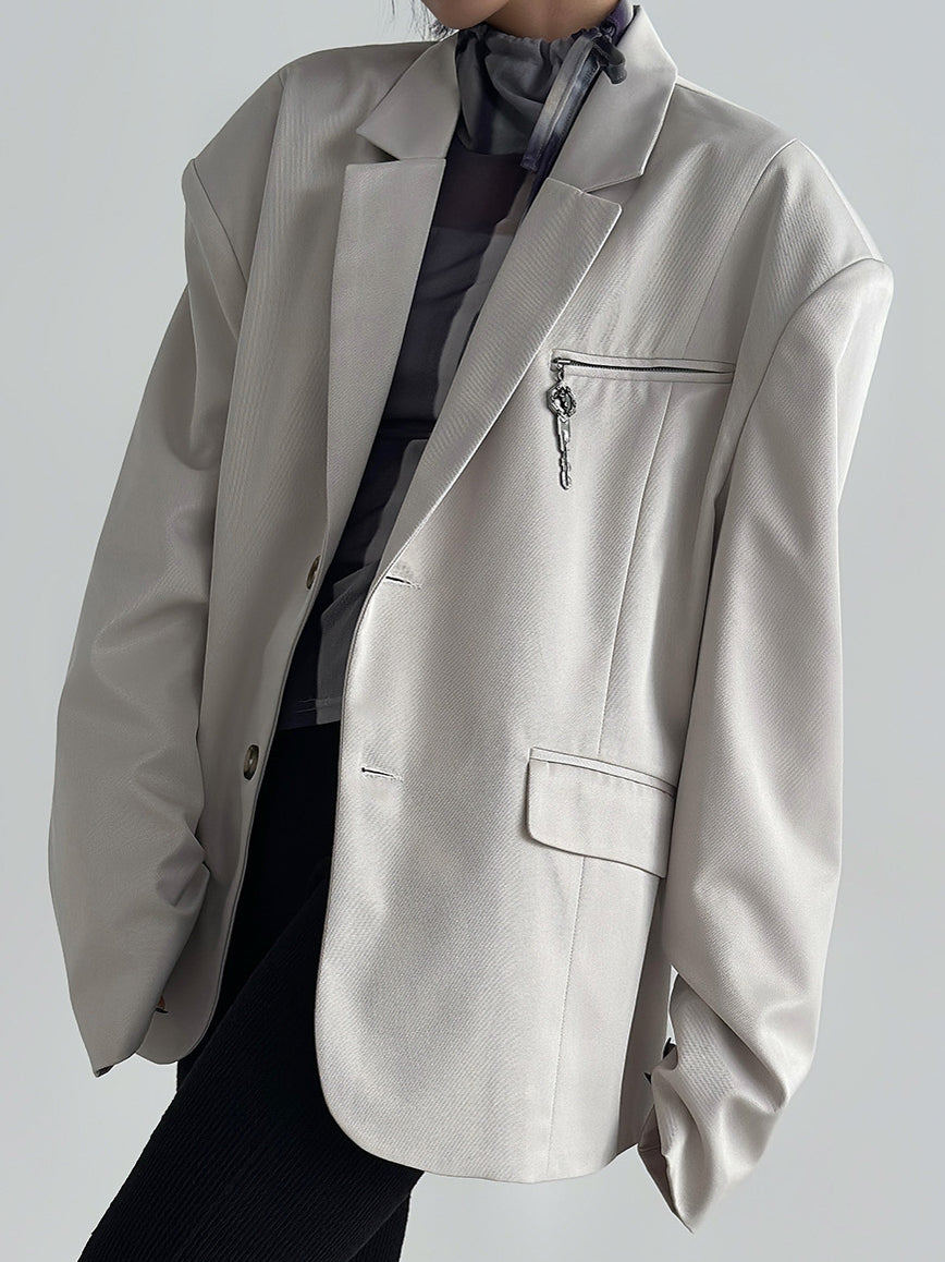 採用落肩設計+修長下擺,線條自然流暢。特別位係袋口飾有低調匙扣金屬裝飾,為整體加添細節層次。內搭背心夠Chic,襯件恤衫即刻得體見人,一件着足全日都得。