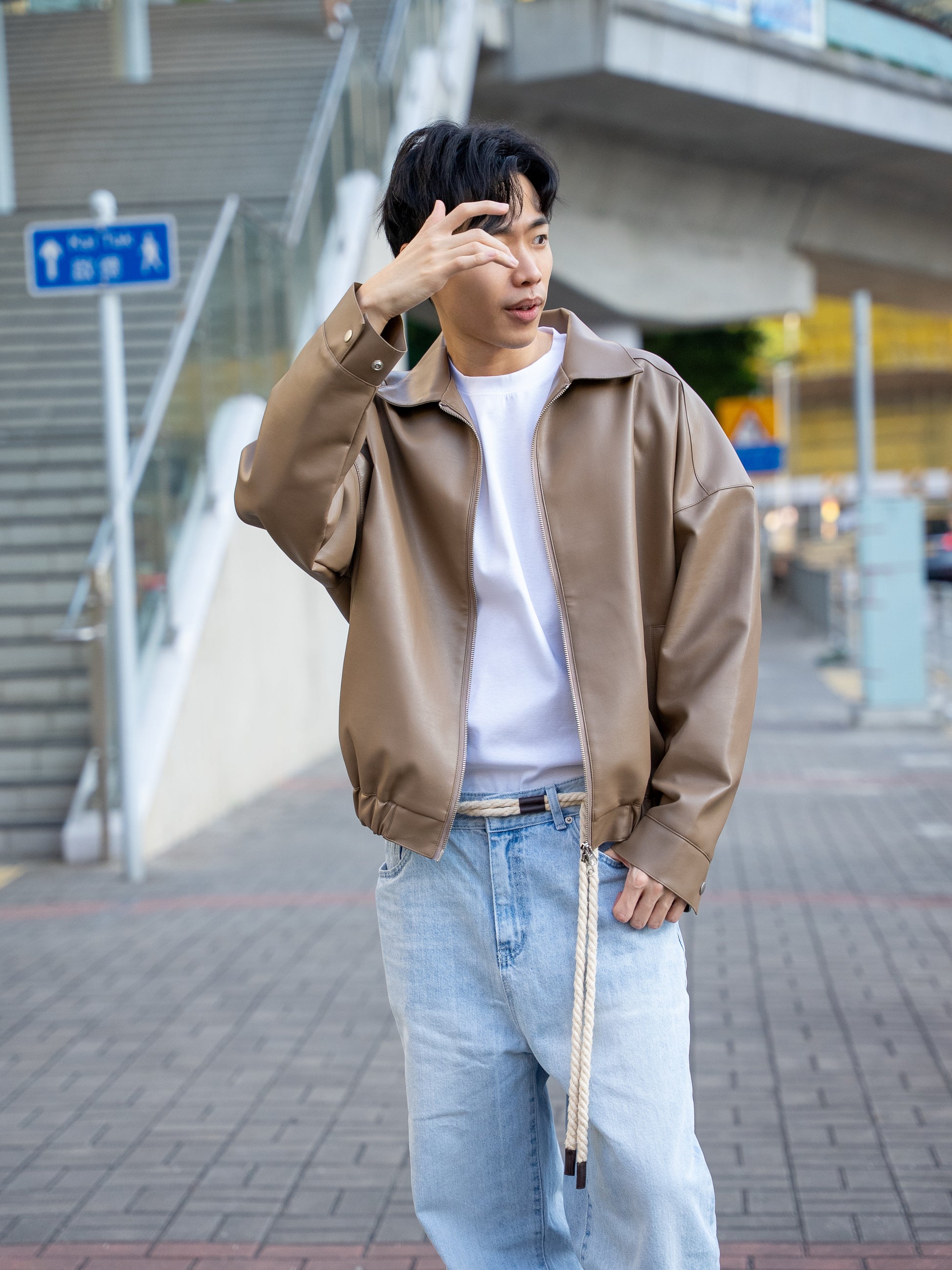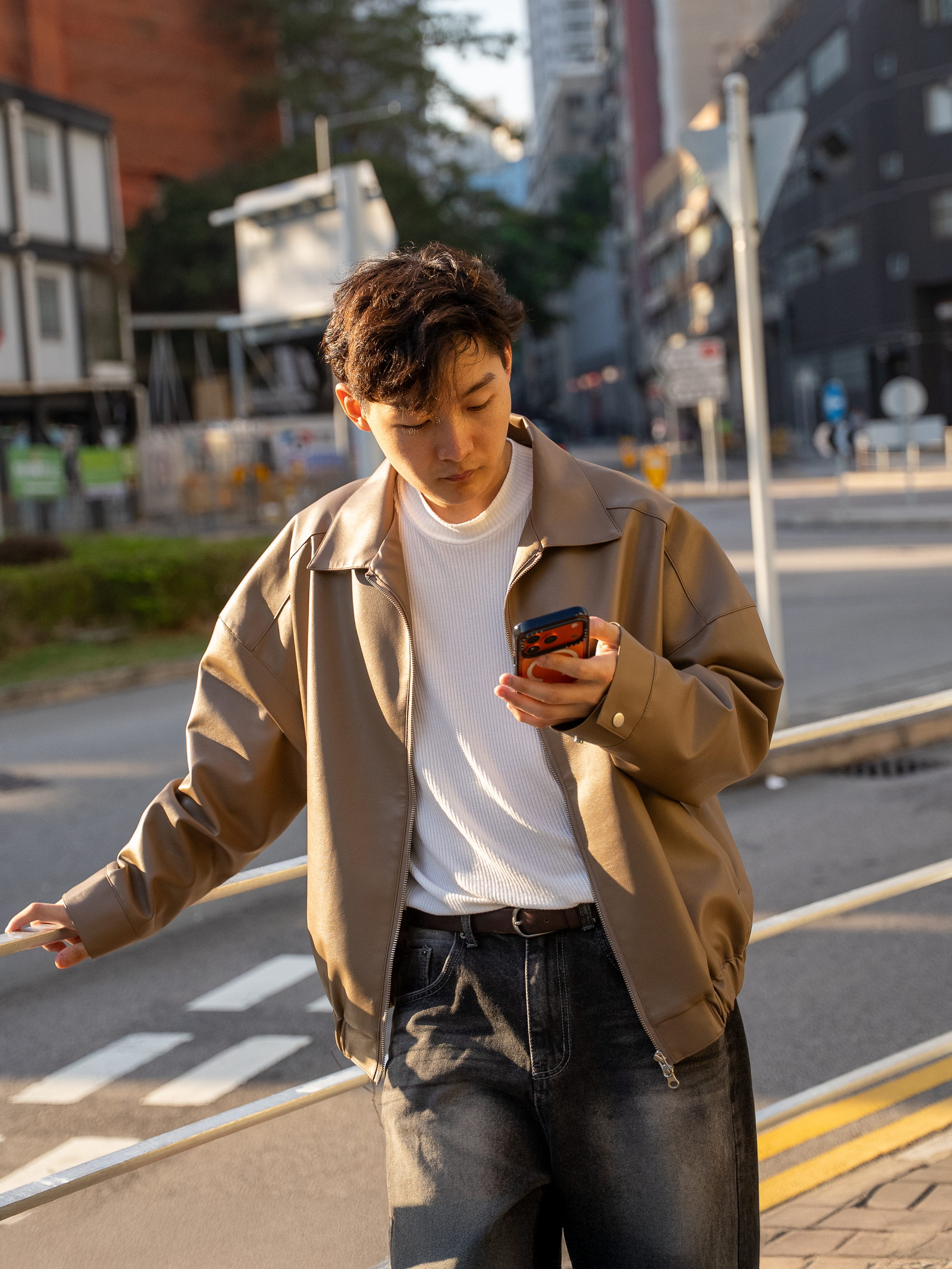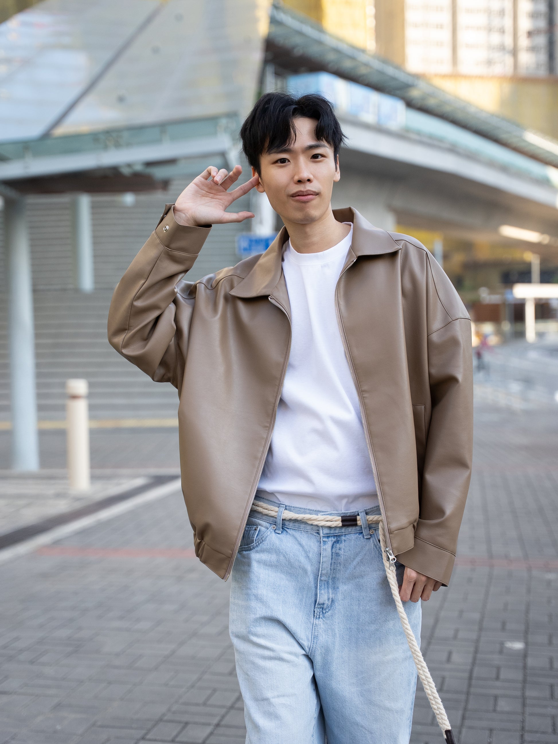 以柔霧啞光皮革製成,低調但有存在感,著上身自然拉出肩線比例。短版輪廓乾淨利落,無論襯Tee定針織,都能呈現韓系精緻感。日常、夜晚出街、約會都 easy carry。