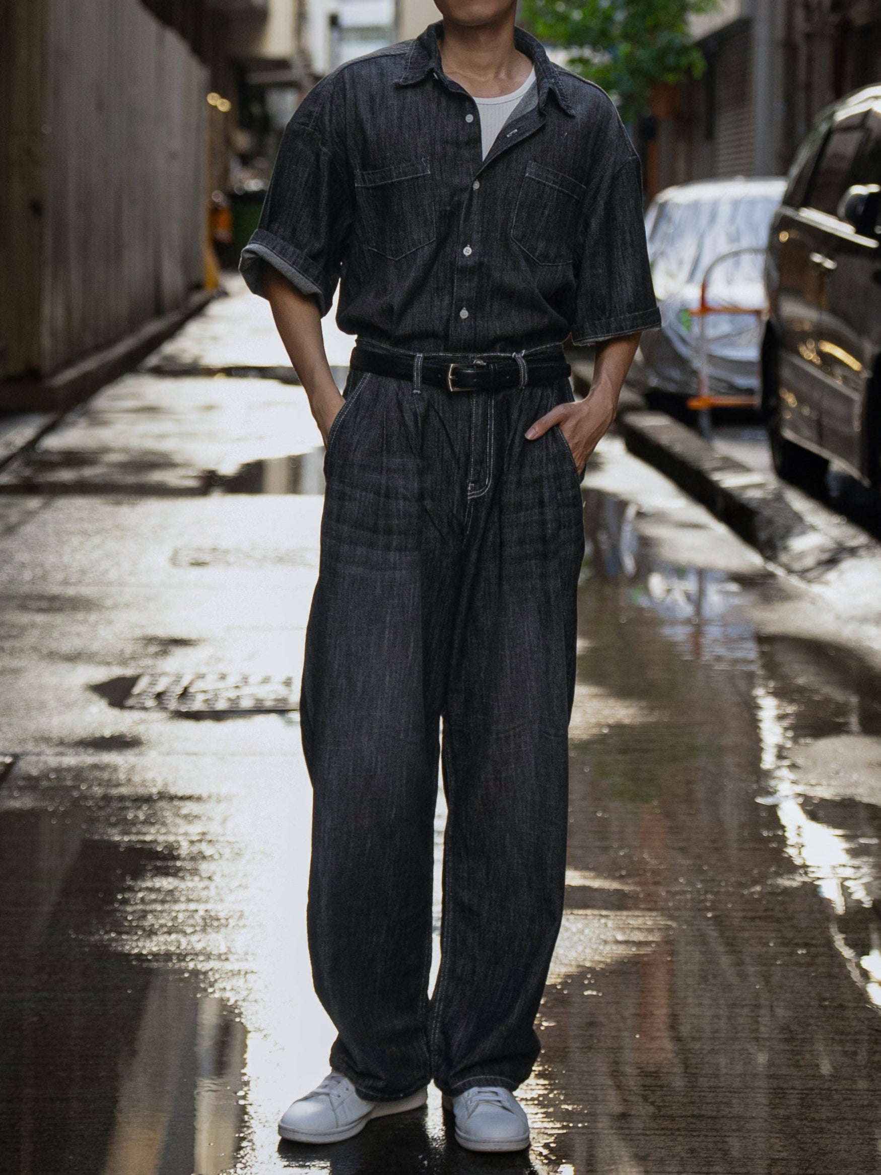 水洗布料結合挺身剪裁,無需多餘裝飾,靠線條與質感講故事。雙袋上身結構分明,視覺層次自然有Feel,直腳長褲或微寬短褲自由搭配,簡單配襯已經有style。