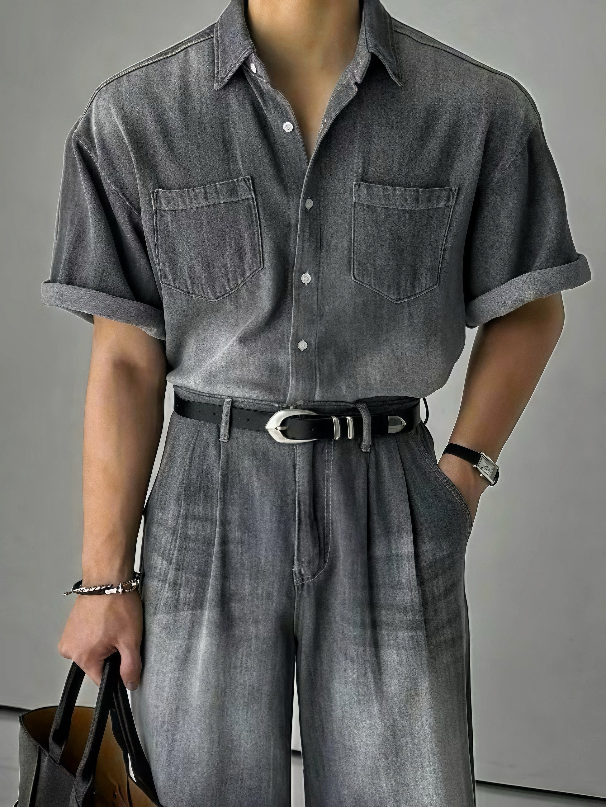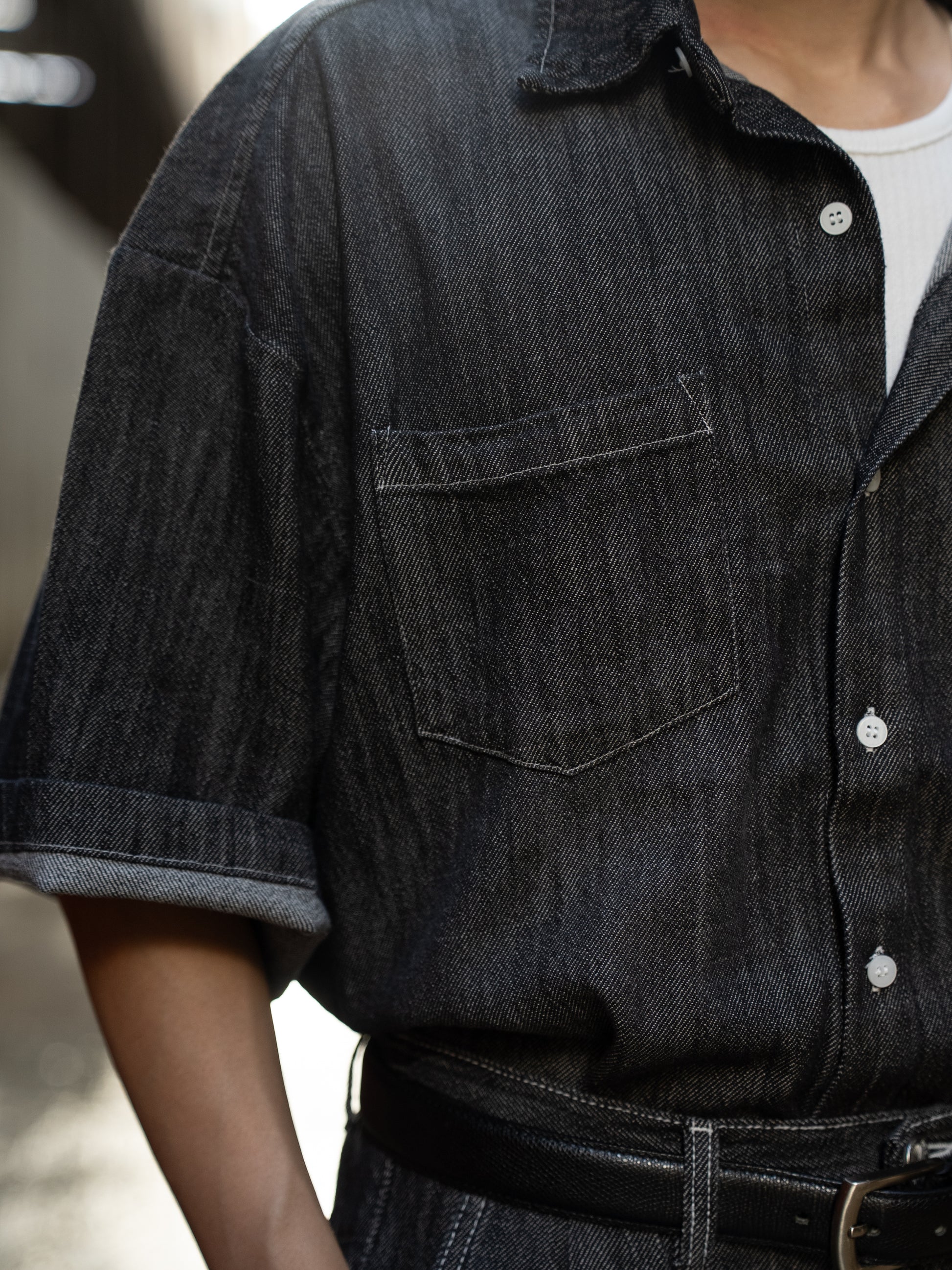 工業風復古牛仔短袖襯衫