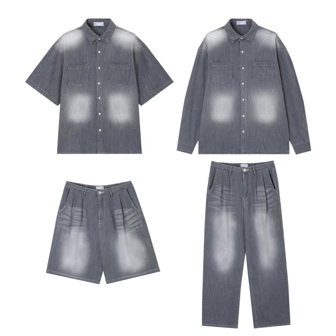 工業風復古牛仔短袖+長褲套裝