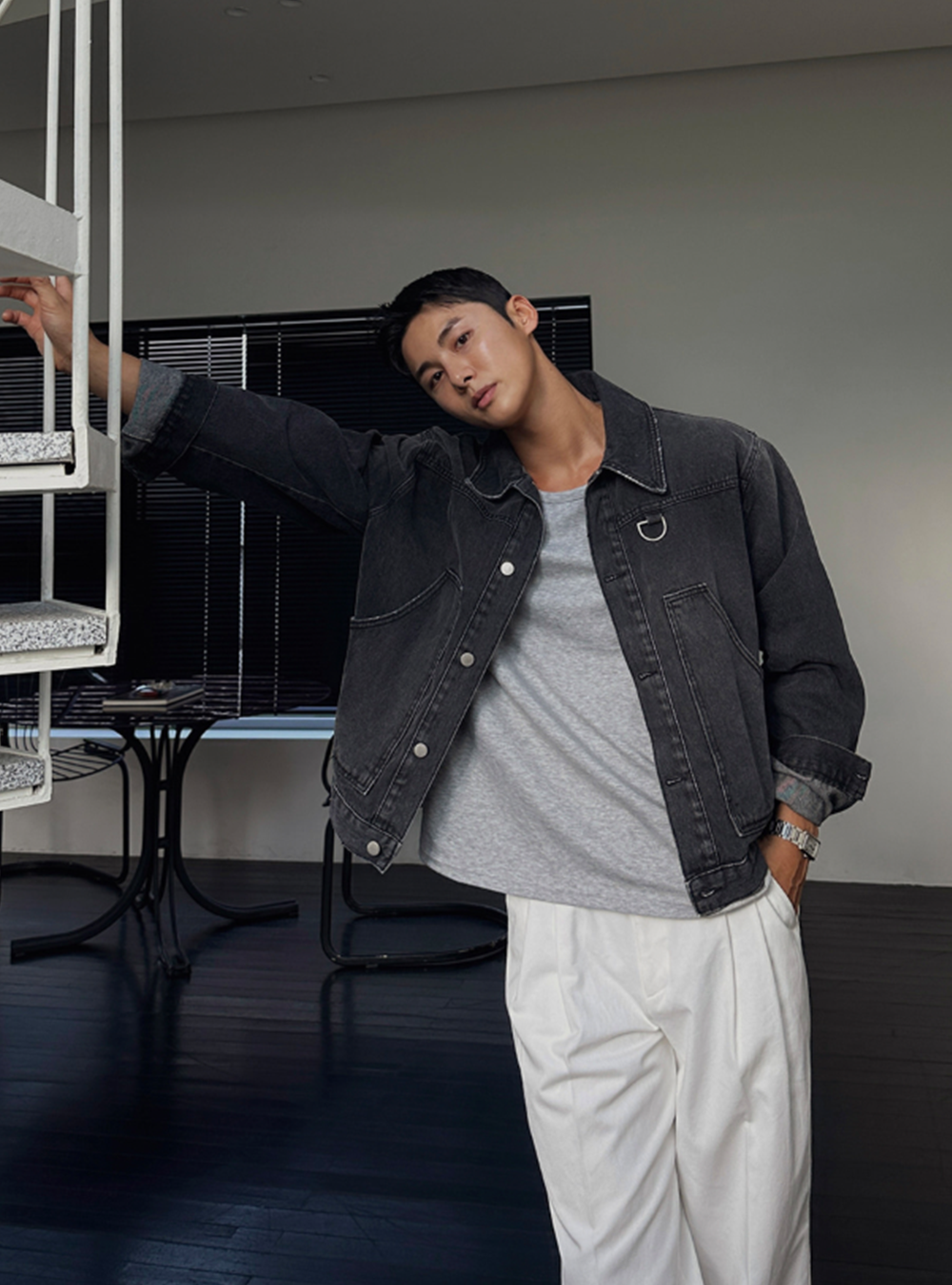 以短版剪裁打造俐落比例,結合復古金屬扣飾細節,穿上即刻有種自然不造作的韓系層次感。外套本身帶淡淡洗水感,日常配 Tee、針織或闊腳褲都好易 carry,簡單就出到門。