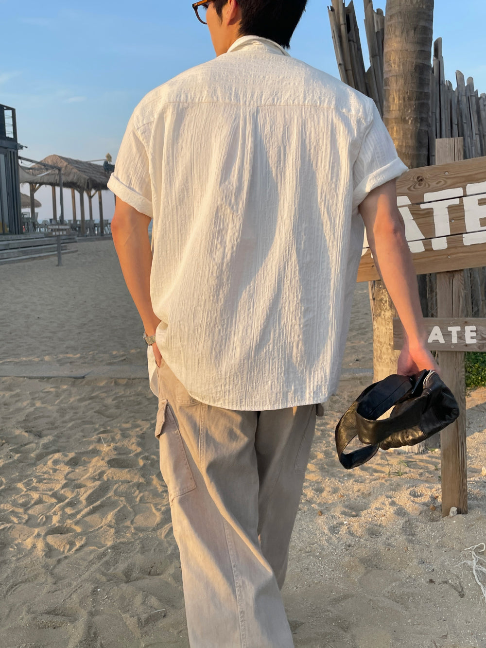 布料微皺、唔焗唔黐身,剪裁略寬但線條乾淨,搭配短褲、卡其褲或牛仔褲都得。唔浮誇,但夠型,係屬於夏天的「剛剛好」。