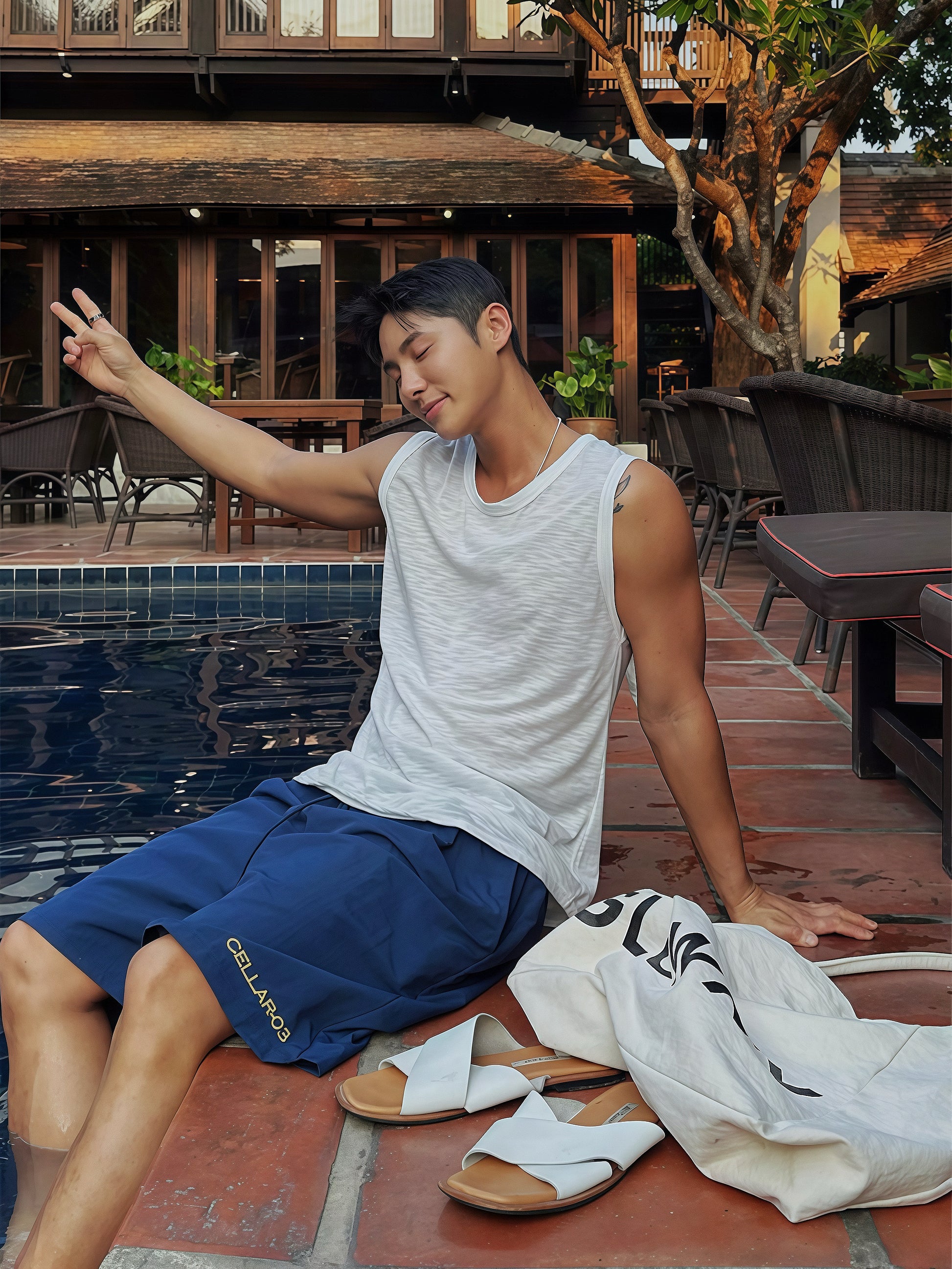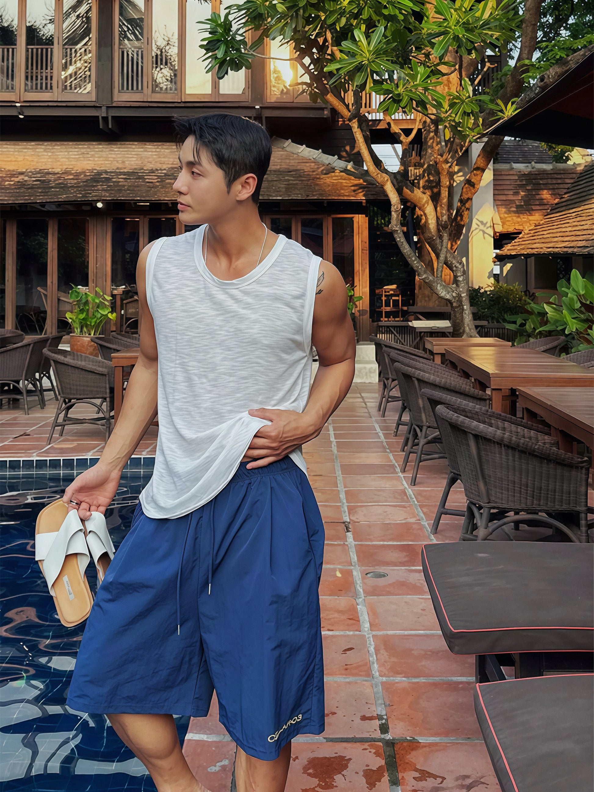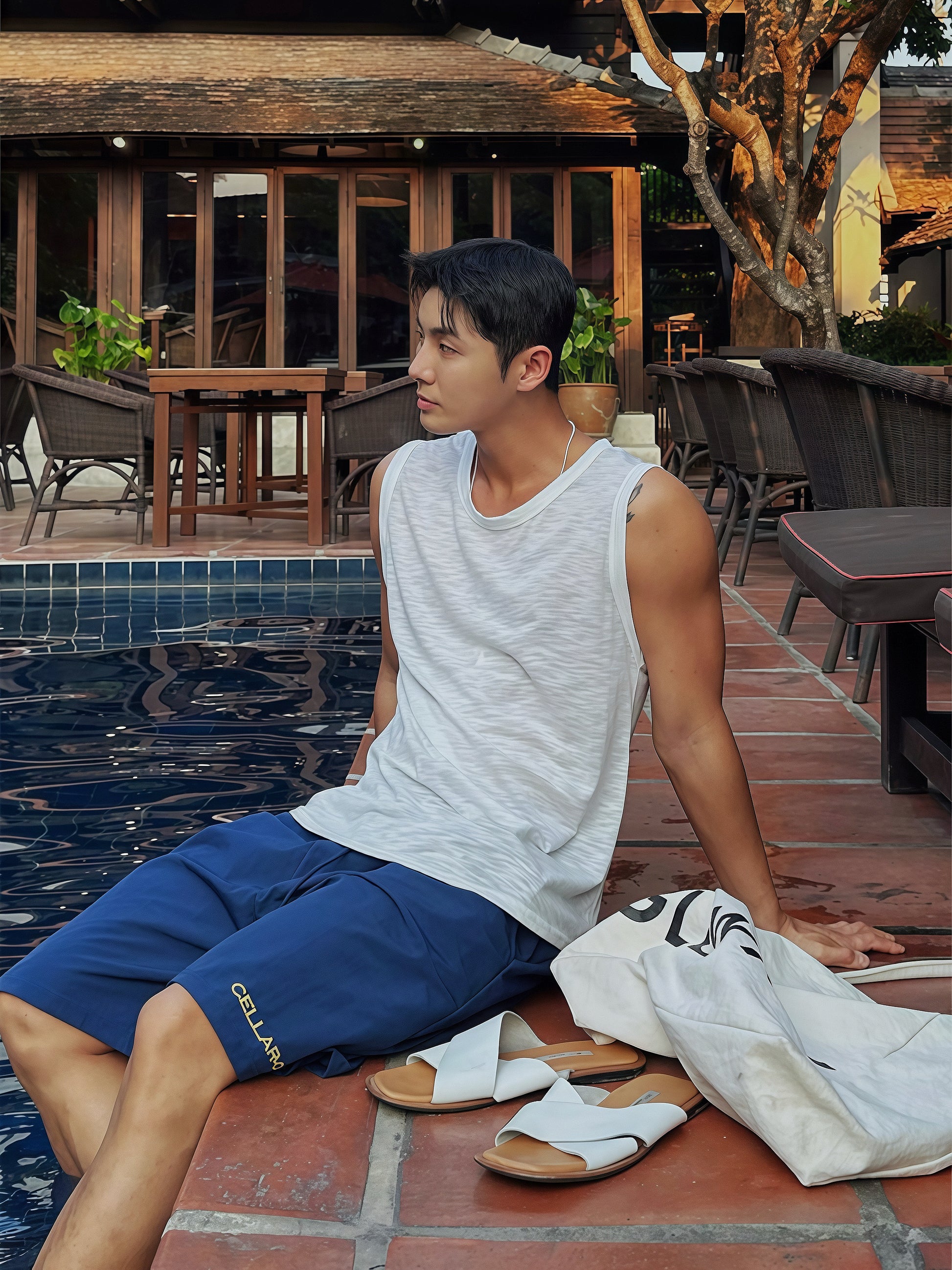 有時,放鬆唔一定要飛走,一件剪裁寬鬆、有自然紋理嘅背心,就已經足夠。呢件波浪度假背心用上輕身布料,紋理似陽光照落水面咁柔和,隨便一著,就想拎對涼鞋坐喺泳池邊歎番杯。