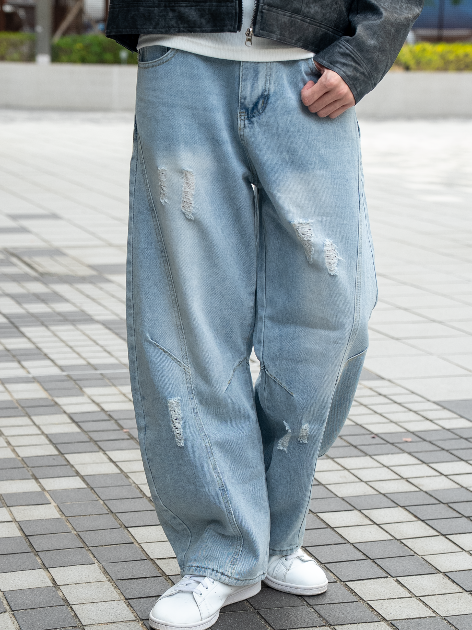 【破損細節・展現街頭態度】