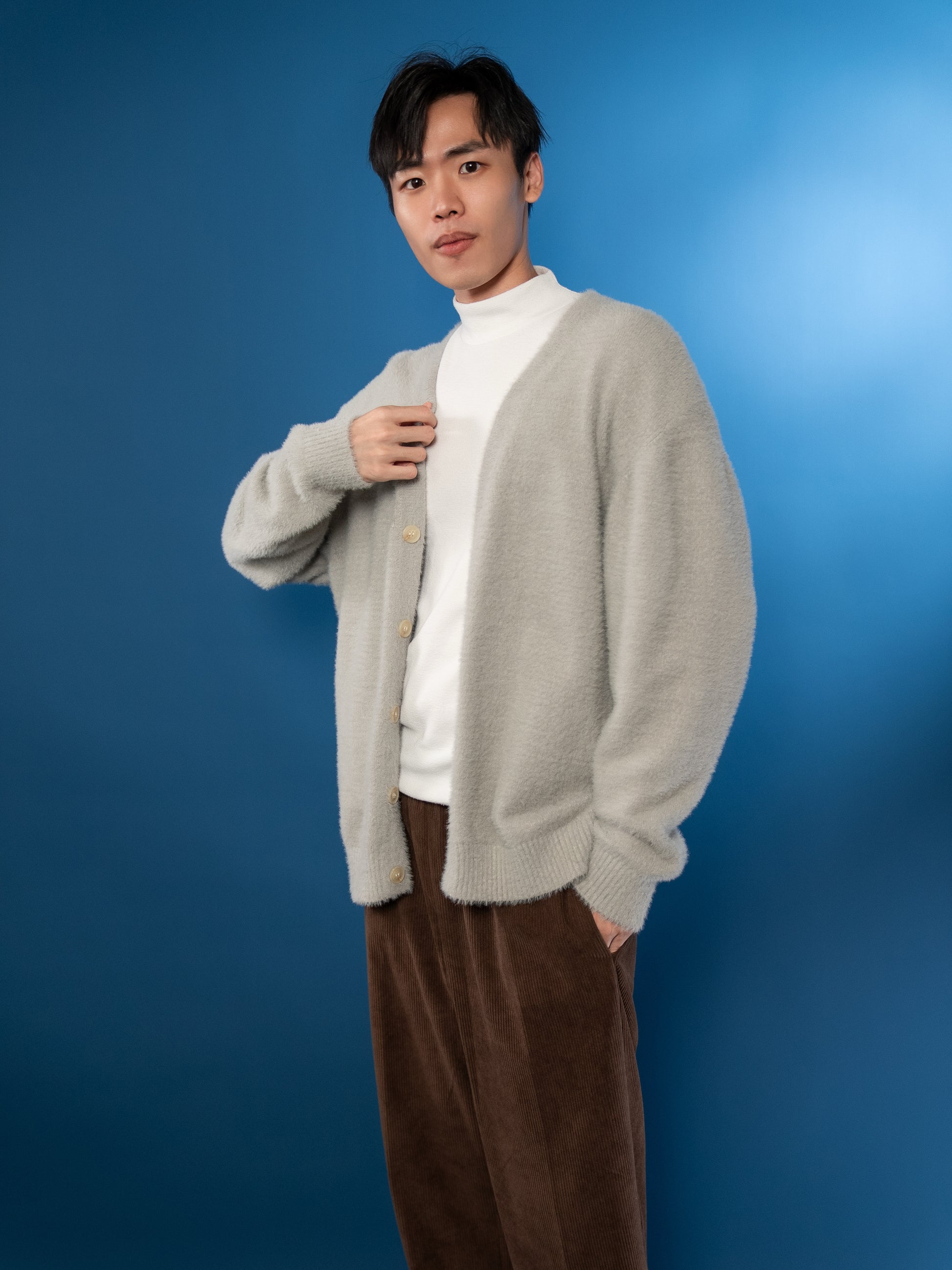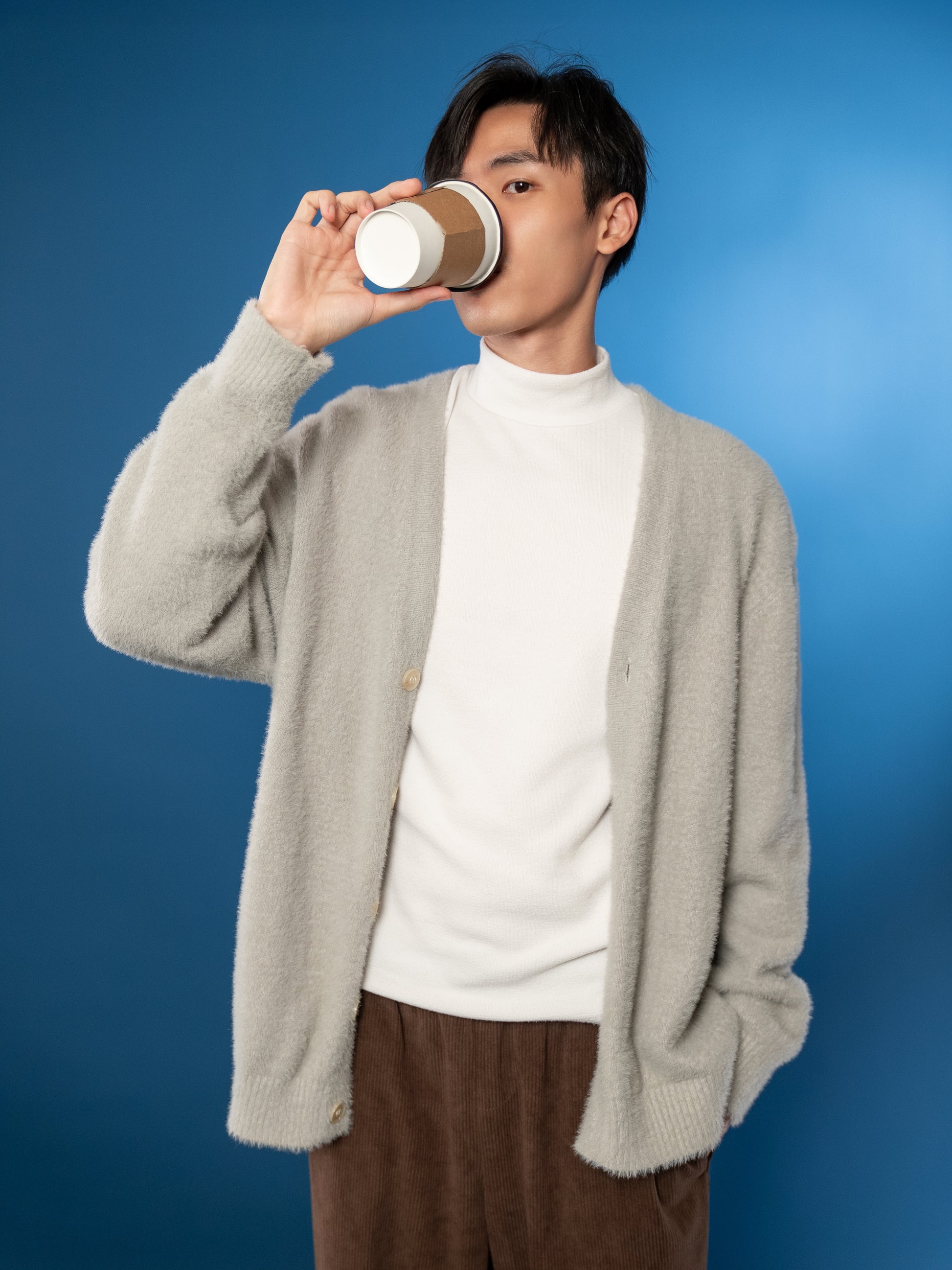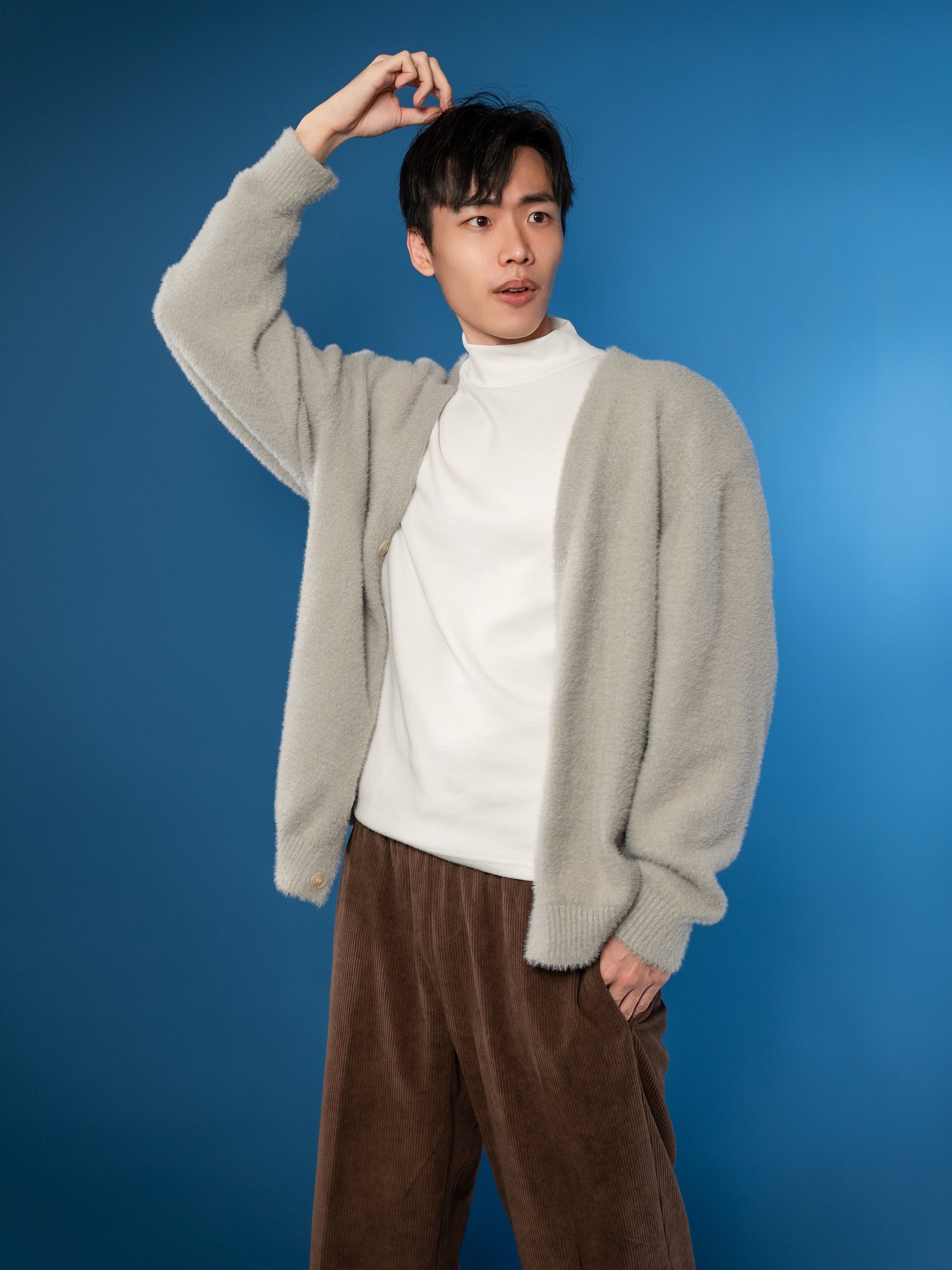 微絨毛質地帶輕微空氣感,手感順滑不厚重。版型略帶鬆度,層次感自然,開襟設計令配搭更自由——襯高領、Tee 或恤衫都一樣靚。秋冬日常穿搭必備一件。