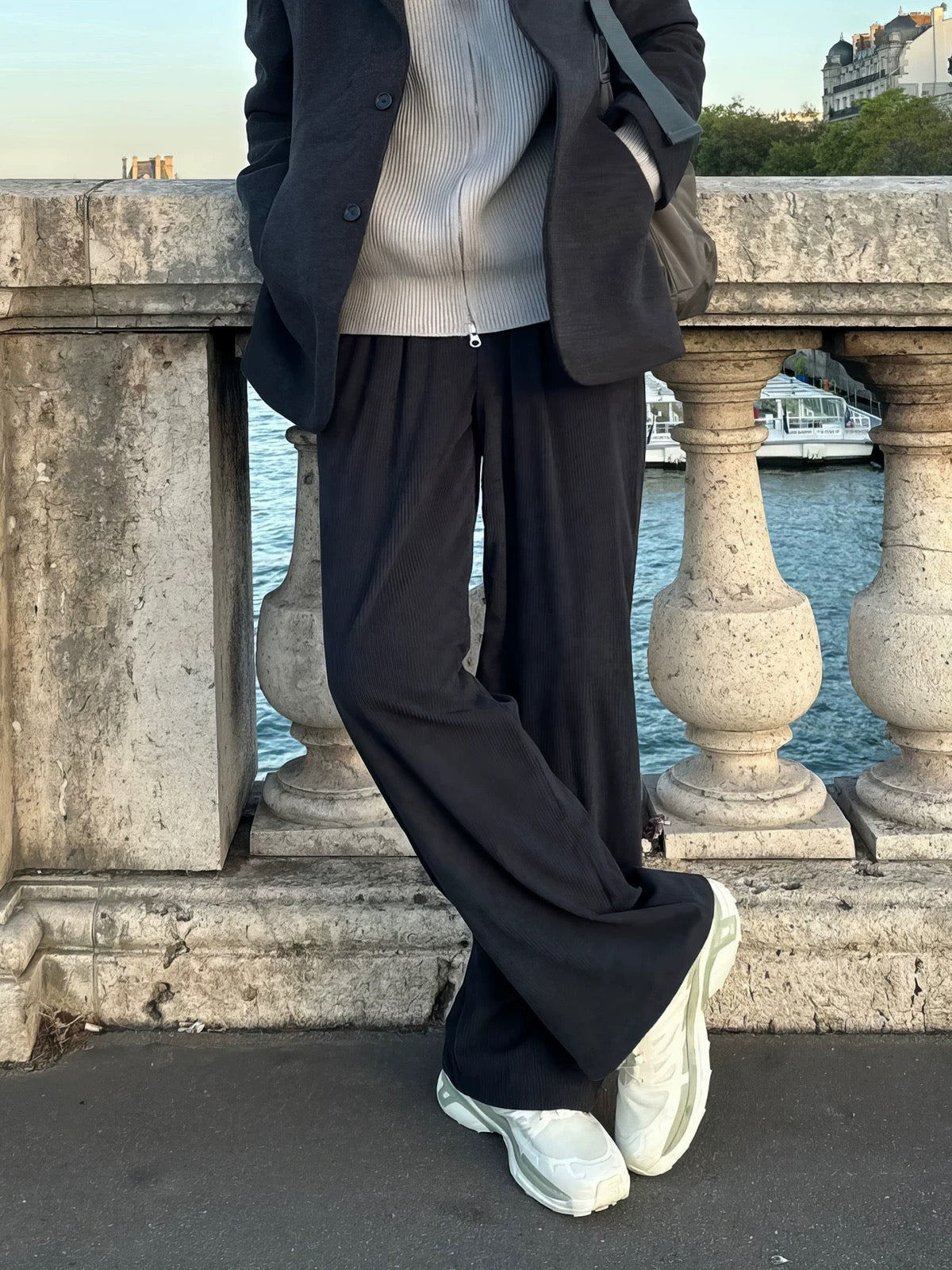 布料柔軟耐穿,落地長度拉長腿型比例,配上鬆緊腰設計,活動更自在。七種配色選擇,輕鬆演繹由日常到街頭的韓系休閒感。