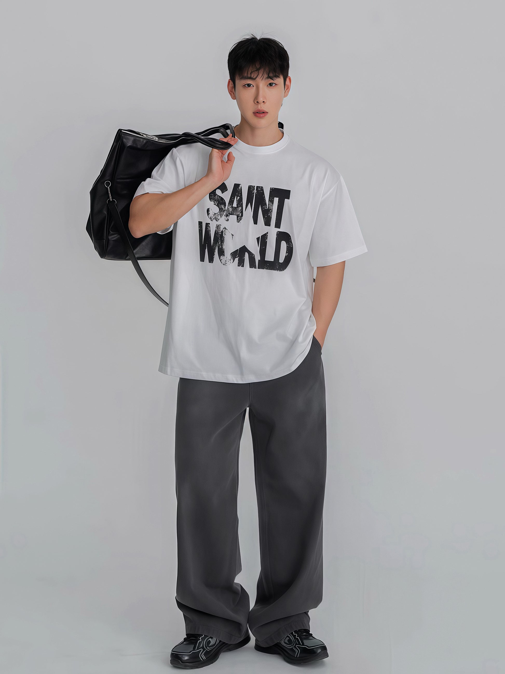 呢件Tee用上強烈對比的大字排印設計,“SAINT WORLD” 以筆刷效果呈現,視覺衝擊感強,一著上身已經有屬於你的故事。字體擺位有空間感,成件衫呈現一種不修邊幅的街頭冷感風,唔跟規則,正正就係你的Style。