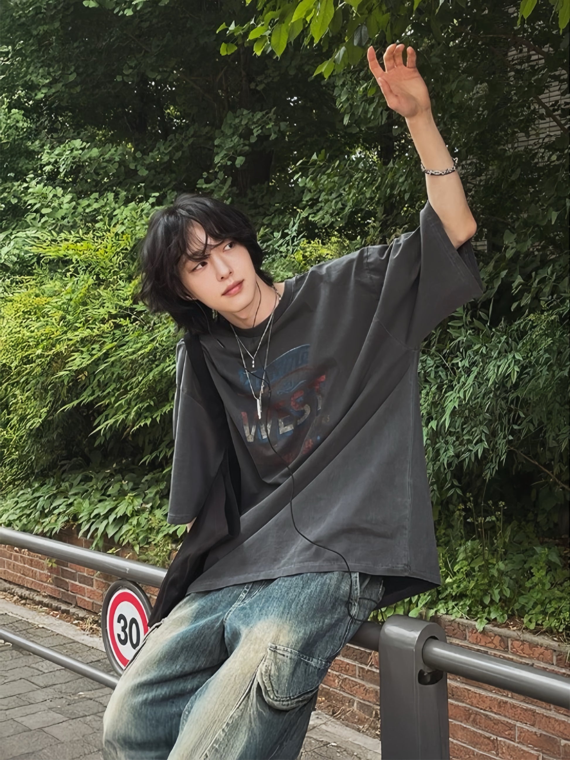 布料經水洗工藝處理,色澤層次自然有味道。胸前 WEST 字樣印花,低調又帶點玩味感,Oversize 包容度高,適合任何身形,單穿或者內搭都夠搶眼。